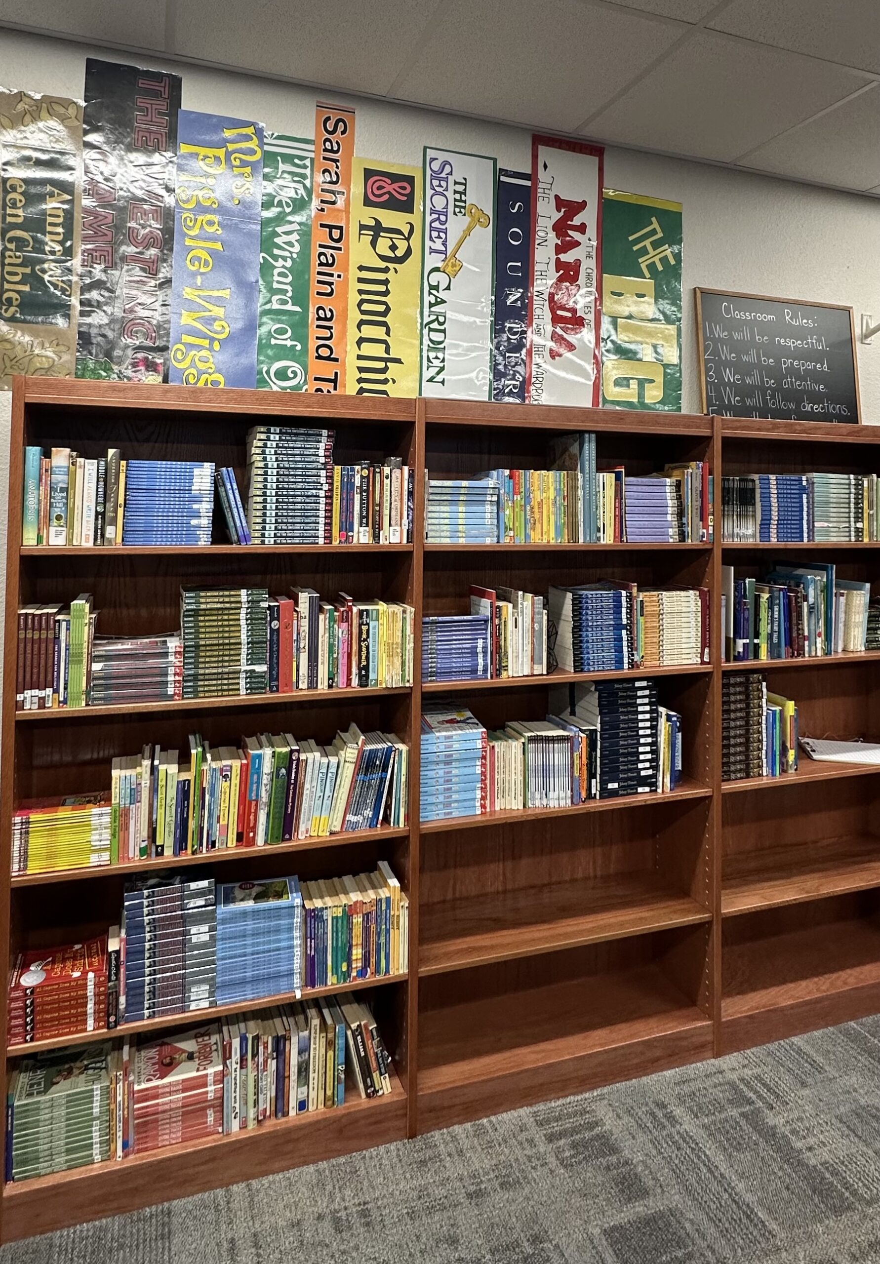 Take a look at our new and improved library! We are inviting all students to bring a book to donate. It is of the utmost importance, however, that we offer our students only the highest quality books. To that end, we have carefully crafted an extensive Amazon Wish List containing titles we believe are truly worthy of our scholars’ time and attention. Wherever you choose to purchase your books, please only donate books from this list.”